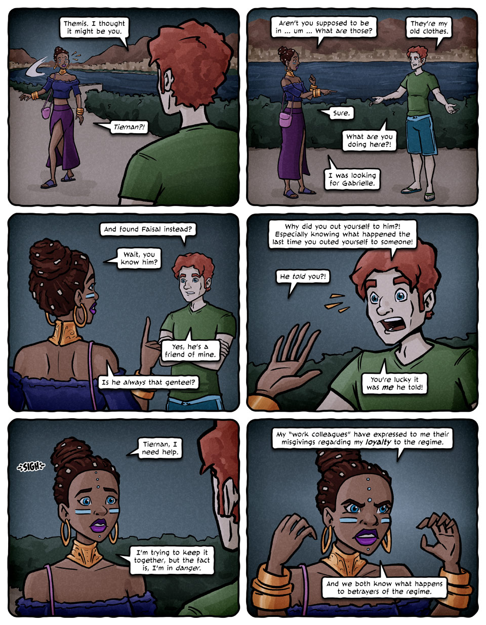 2026.04.26 #themis #tiernan Themis sees an unexpected face. Yes, she's judging Tiernan pretty harshly for his sartorial choices this evening.